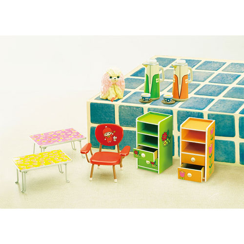 カラフルなラックやテーブルなど「昭和のお茶の間」の雰囲気を再現できる「昭和ノスタルジック ミニチュアコレクション 2」。