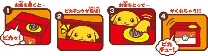 鳴き声と共に「ピカチュウ」が現れ、コインを大事にお預かりするという商品です。