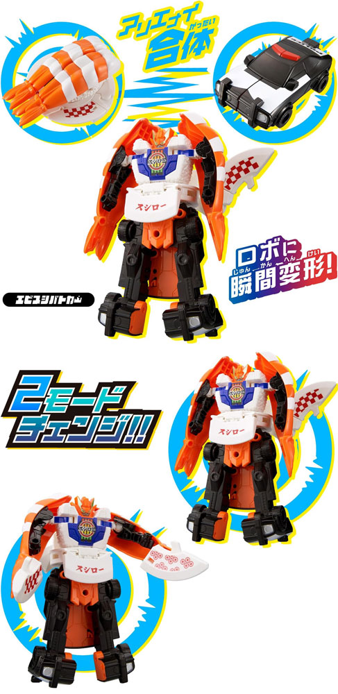 「エビスシ」と「パトカー」が合体し、瞬間変形するユニトロボです。