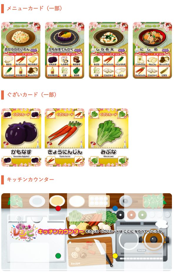メニューカード:8枚 / ぐざいカード:48枚 キッチンカウンター:3枚1組×4セット 取扱説明書:1枚 / 取扱注意書:1枚