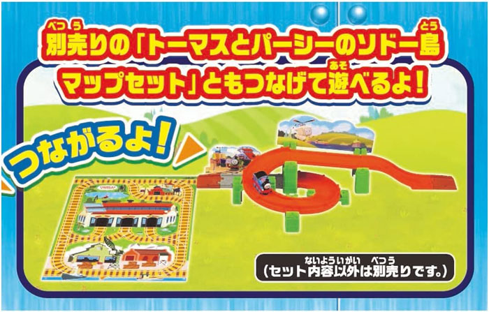 ●別売りの「きかんしゃトーマス ソドー島マップセット」と合わせると、さらに遊びが広がります!