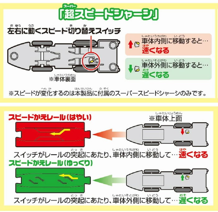 スピードかえレールでのスピードチェンジが楽しい、待望の「超スピードシャーシ」搭載の単品シリーズ