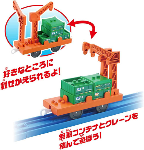 コンテナとクレーンは積み降ろし遊びができて、好きな所に載せ替えができます。