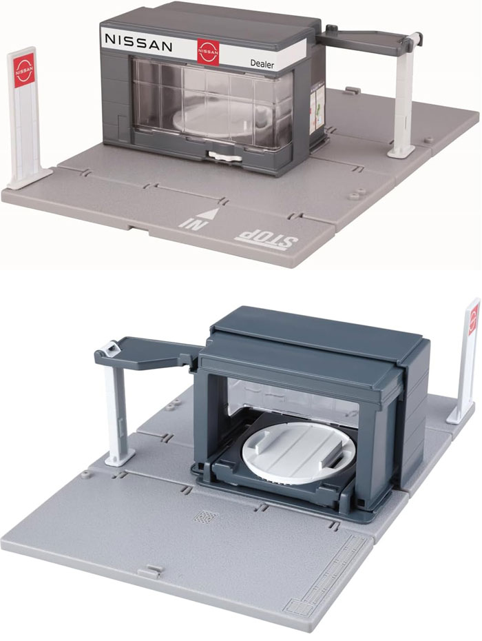 パッと開いてすぐに遊べるトミカタウンにNISSAN カーディーラーが登場! 日産 スカイライン付き!