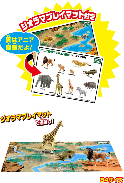 ライオン(1)、ナイルワニ(1)、マサイキリン(1)、ジオラマプレイマット(アニア図鑑)(1)