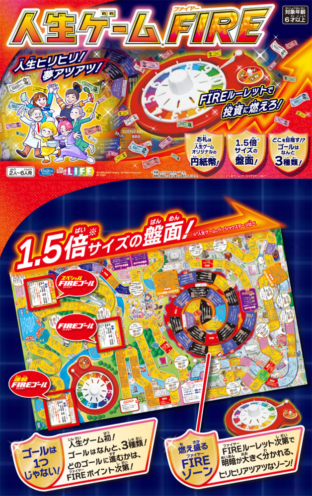★ 盤面サイズ1.5倍の大ボリューム(「人生ゲーム」ベーシックステージ比)★ どこを目指す!?ゴールはなんと、3種類!