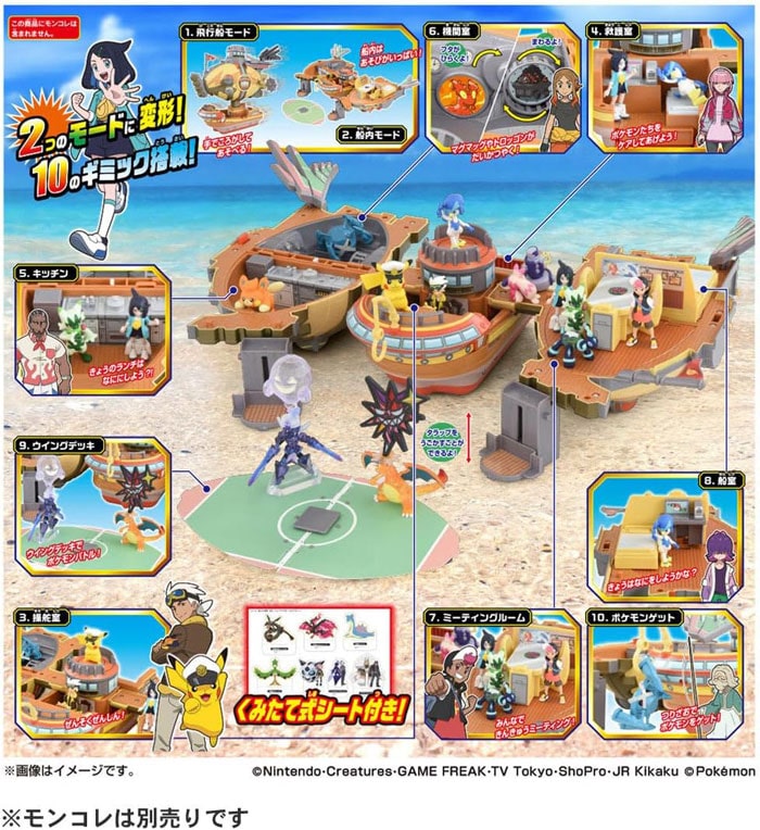 ・飛行船モードではTVアニメ「ポケットモンスター」に登場するブレイブアサギ号を再現!モンコレを乗せて、てころがして遊ぼう!
