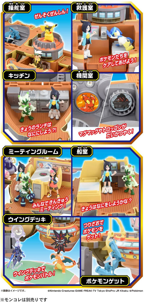 ・船内モードでは、操舵室、救護室、キッチン、機関室、ミーティングルーム、船室などTVアニメ「ポケットモンスター」に登場するシーンを再現出来るぞ。