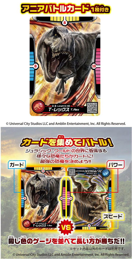 アニア ジュラシック・ワールドシリーズに、映画『ジュラシック・ワールド/復活の大地』の劇中に登場する新恐竜が、バトルして遊べるカード付きで登場!