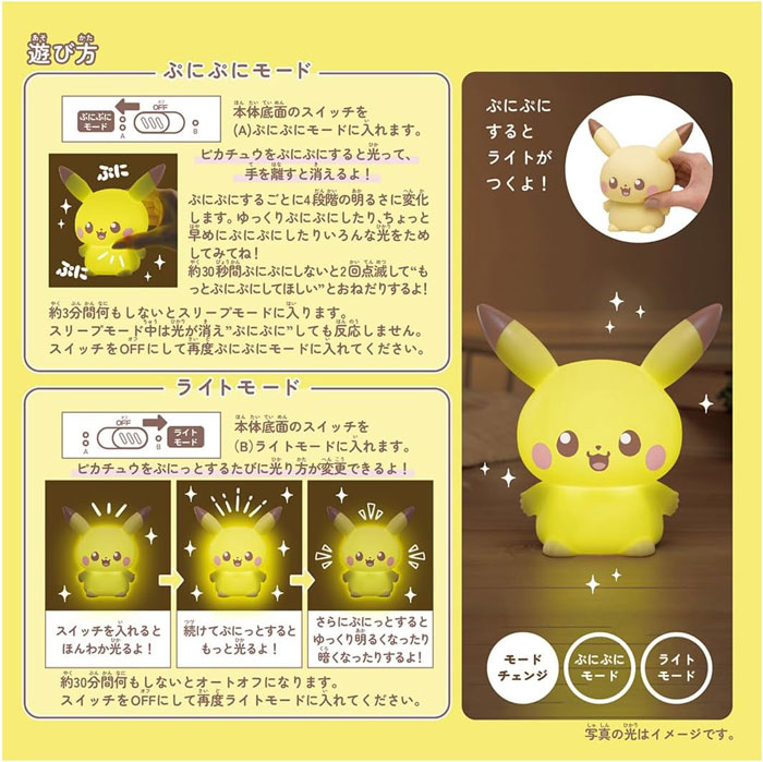 ぷにぷにするとライトがピカッ! わらったおかおがかわいいポケピースのピカチュウが、ライトになったよ