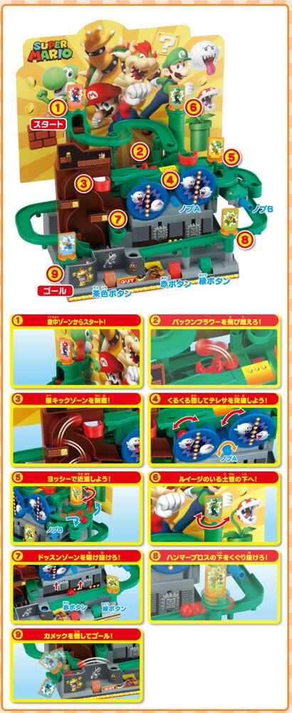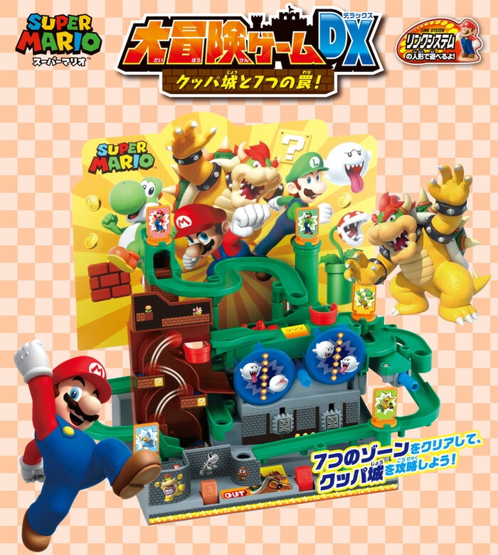 マリオなど、おなじみのキャラクターがエキサイティングに冒険を盛り上げます。