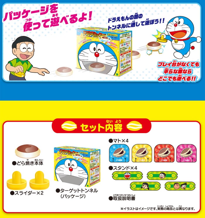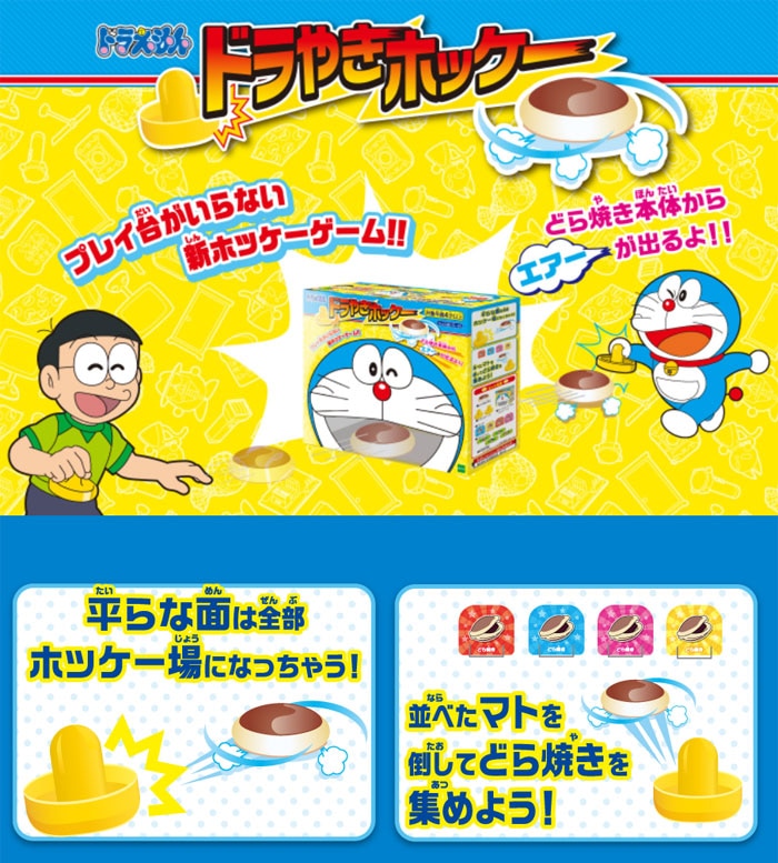 ドラえもんが大好きなドラやき型のエアーホッケーです。