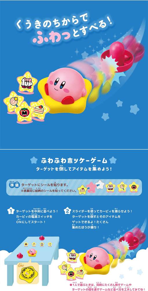 ワープスターに乗っているカービィを滑らせ、アイテムターゲットを倒す商品です。