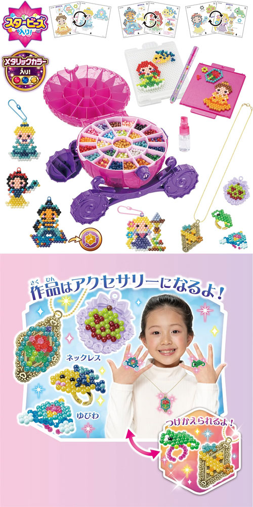 シンデレラ、ベル、白雪姫、ジャスミン、アリエル、ラプンツェルと仲間たちや小物がいっぱいつくれるオールインワンセットがメタリックカラービーズ入りで新登場!