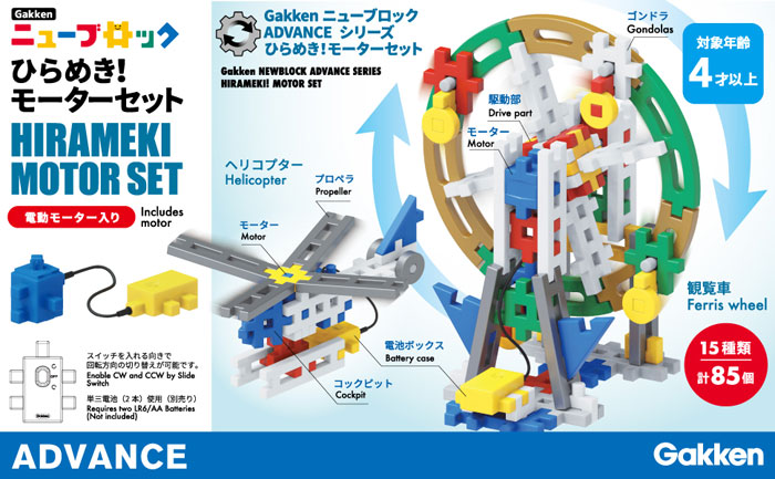 ニューブロックにスイッチを入れるだけですぐ動く簡単モーターユニットが新登場!