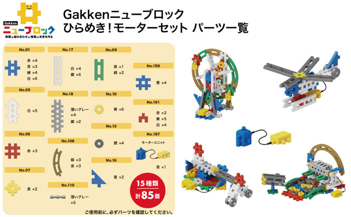 ブロック:ブロック14種84パーツ、モーターユニット1個