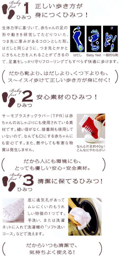 Baby feet(ベビーフィート)は生体力学に基づき、赤ちゃんの足の形や動きを研究して作られた安心設計。