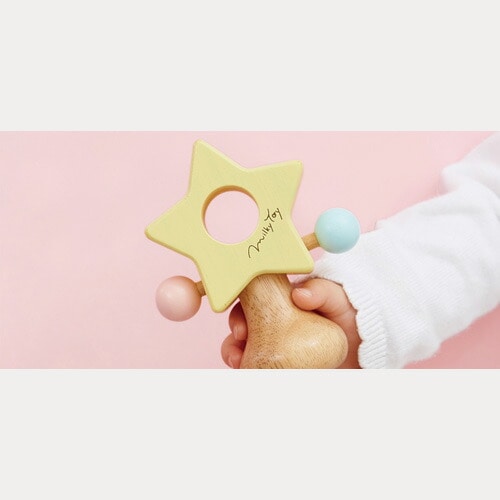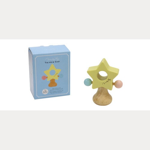 木の音色と色あいがやさしい、お星さまのラトルです。