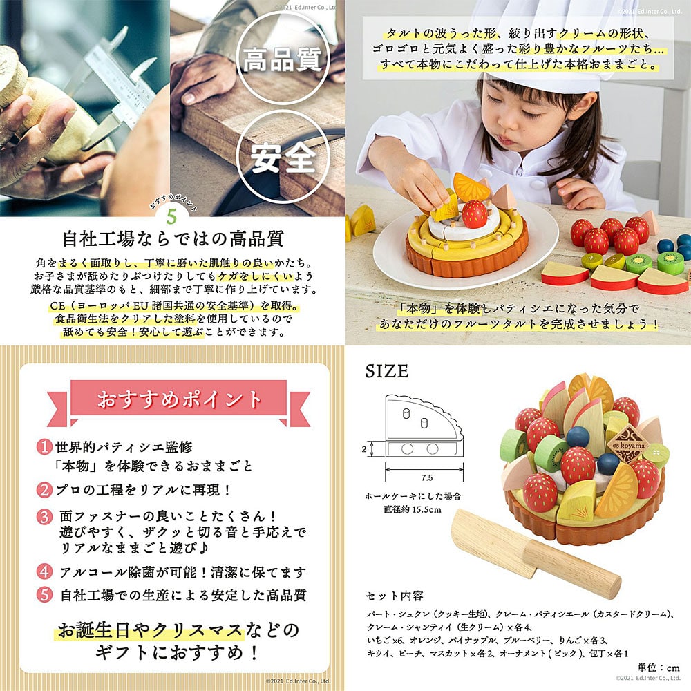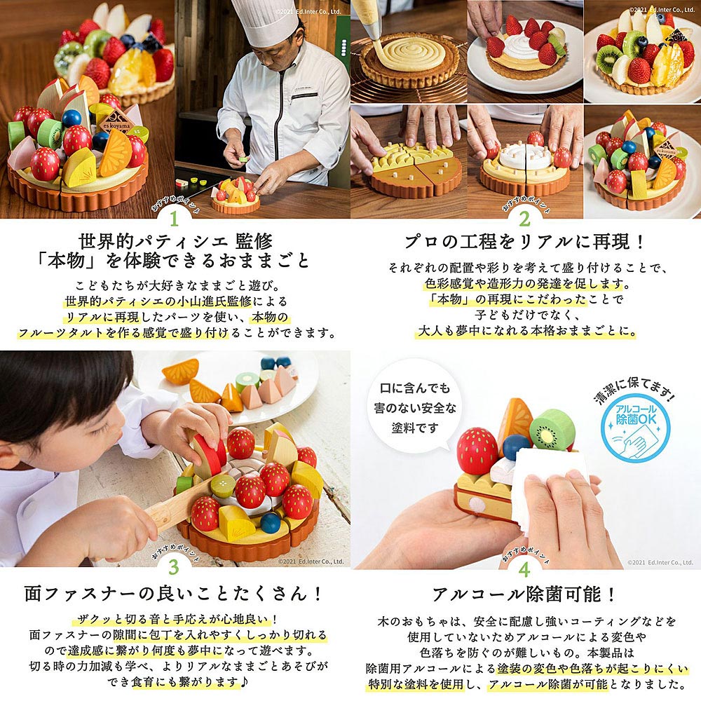 完成したフルーツタルトを包丁でザクッと切り分ける、おままごとならではの遊びも楽しめます。