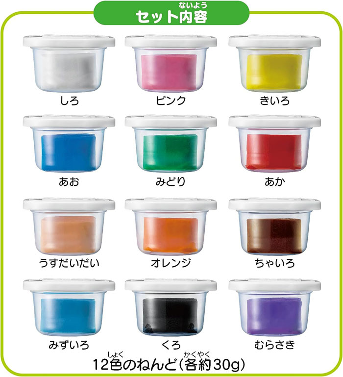 ●もっちり感触!なめらかでのびがよく、色々な形が作りやすいお米のねんどのケース入り12色セットです。