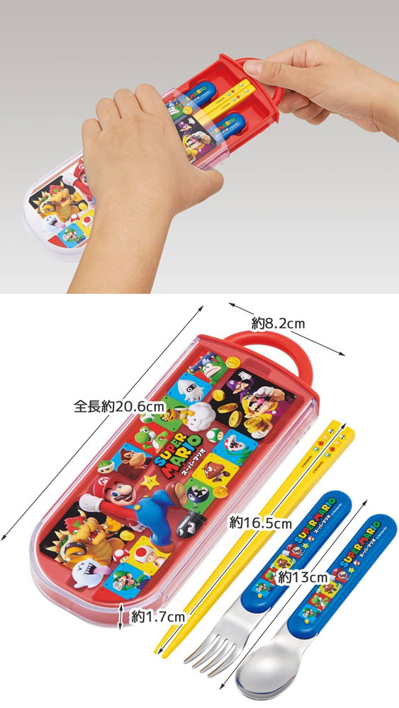 スーパーマリオブラザーズ 23 抗菌 食洗機対応 スライド式トリオセット (箸 フォーク スプーン ケース お名前シール付属) TACC2AG 【ゆうパケット(ポスト投函)でお届け】