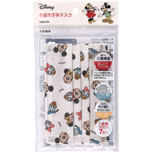 ミッキー&フレンズ 子供用 不織布 プリーツマスク (7枚入り) MSKP3N 【ゆうパケット(ポスト投函)でお届け】