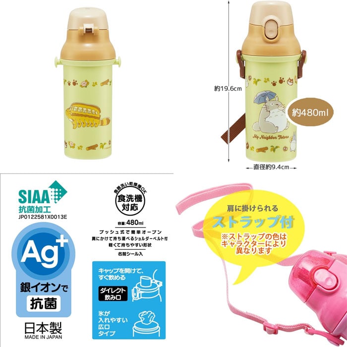 となりのトトロ (ネコバス ジブリ) 抗菌 食洗機対応 直飲みワンタッチボトル 水筒 480ml PSB5SANAG