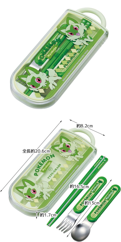 ニャオハ (ポケットモンスター ポケモン) 抗菌 食洗機対応 スライド式トリオセット (箸 フォーク スプーン ケース お名前シール付属) TACC2AG 【ゆうパケット(ポスト投函)でお届け】