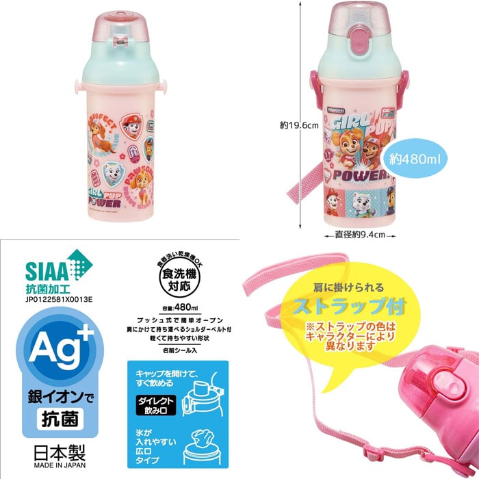 パウ・パトロール (ガール GIRL) 抗菌 食洗機対応 直飲みワンタッチボトル 水筒 480ml PSB5SANAG