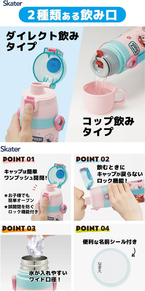 パウ・パトロール (ガール GIRL) 水筒 2WAYステンレス水筒 コップ付き 430ml~470ml SKDC4