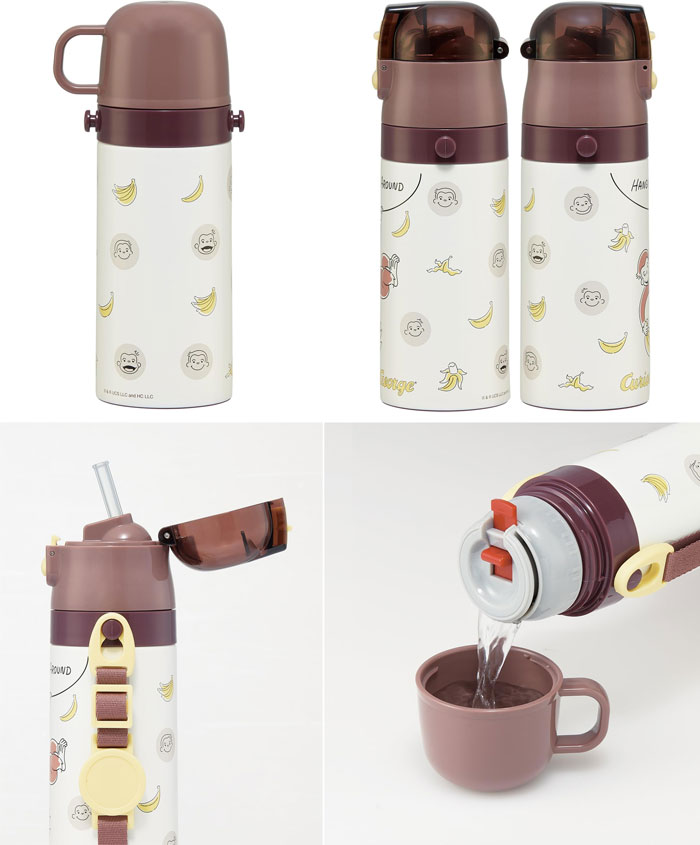 おさるのジョージ 25 水筒 2WAY ストロー コップ付 ステンレスボトル SKCP3