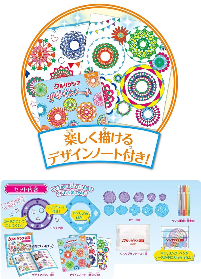 リング2個、ギア10個、ペン5本、デザインブック1冊、デザインノート1冊、クルリグラフケース1個