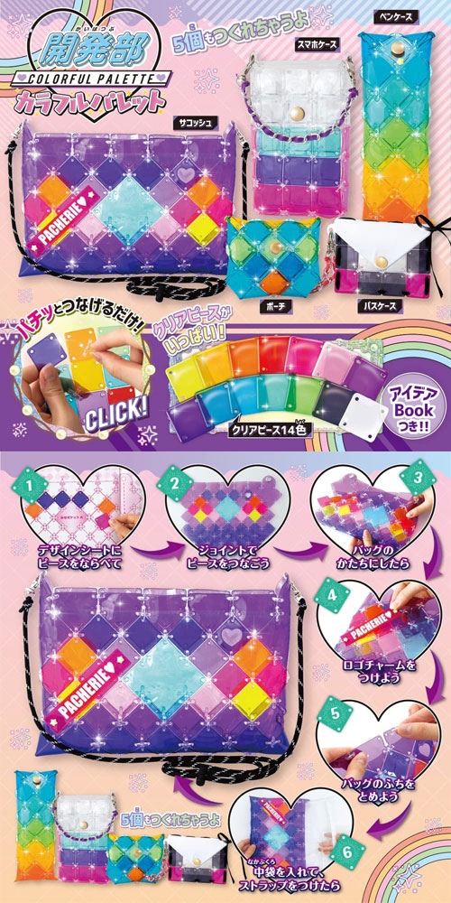 糸を使わずにカラフルなピースをつなげて、ファッション小物が作れちゃう!