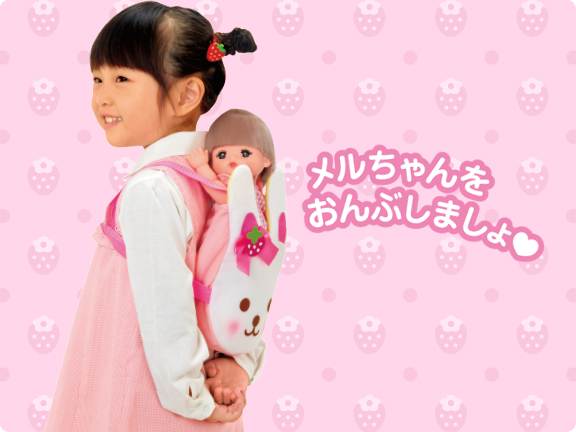 うさぎさんの中にメルちゃんを入れておんぶしたりだっこしてあげたりできるよ。
