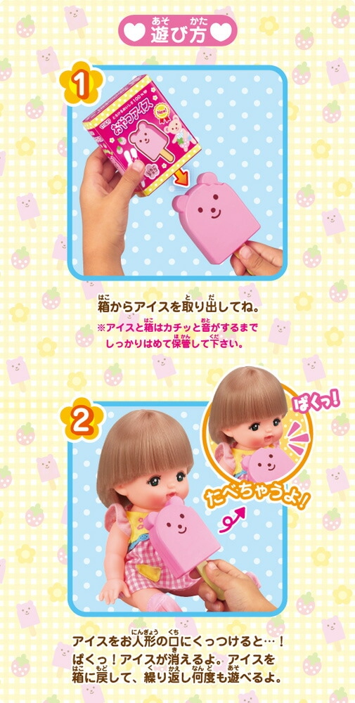 箱から取り出して、耳の部分をメルちゃんに食べさせることができます。