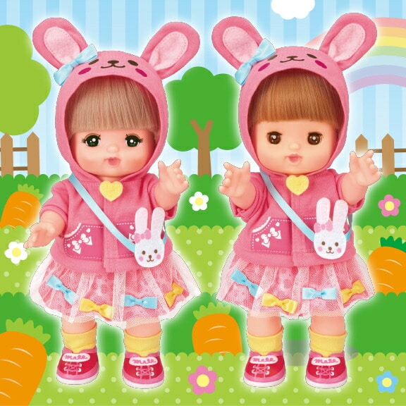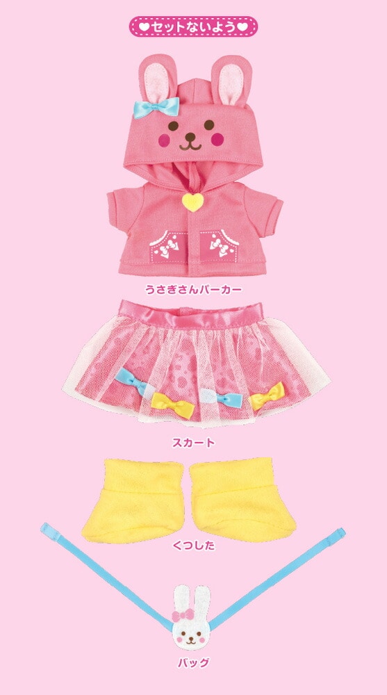 うさぎさんをモチーフとしたピンク色のパーカーのきせかえセット。