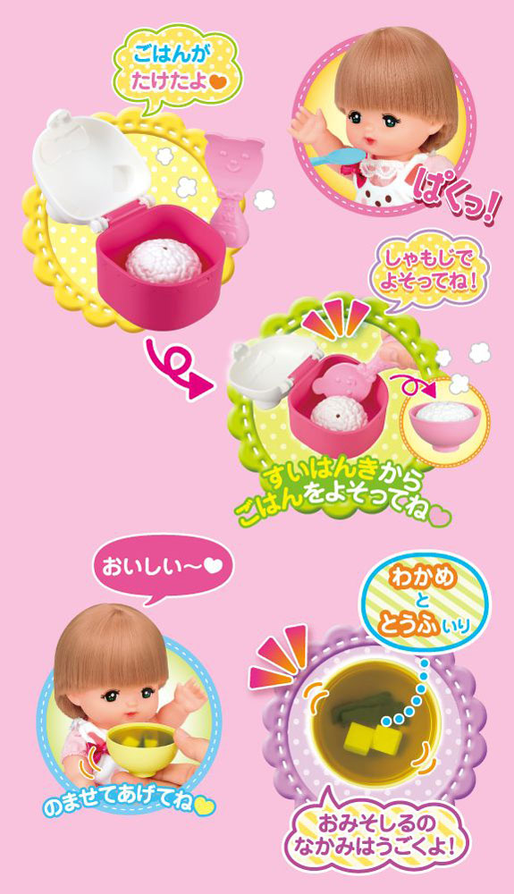 メルちゃんにごはんとお味噌汁を食べさせてね