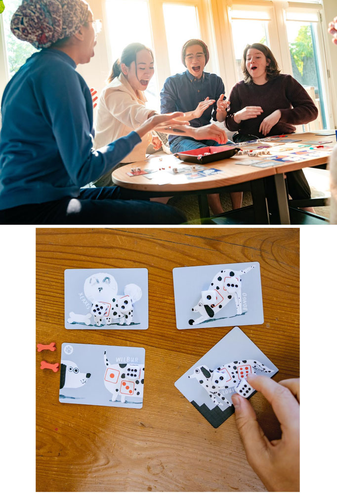 皆さんは自分のかわいいイヌの群れを完成させるため、さまざまなアクション(トリック)を通して、群れとなる6枚の「イヌカード」を完成させます。