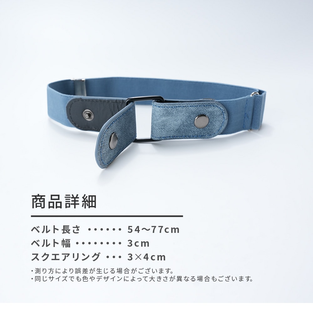 着脱簡単!細見え効果も期待できちゃう♪ ユニセックスのバックル付きループフックベルトです。 着替えやトイレなど、わざわざ外さなくてもOK◎ 腰まわりに食い込みにくく、お腹まわりもスッキリ☆ ベルトループ(ベルト通し)にスナップボタンを留めるだけの簡単装着♪ バックル(3×4)あり/なし2WAYの着用可能! ※こちらは単品(1本)での販売ページです。 【サイズについて】 長さ54-77cm 幅3cm バックルサイズ3×4cm 測り方により誤差が生じる場合がございます。 【素材について】 PU ステンレス 【カラーについて】 生産ロットにより柄の出方や色の濃淡が異なる場合がございます。 お使いのモニターや撮影時の光の加減などにより 画像と実際の商品のカラーが異なる場合もございます。 予告なしにカラーやデザインなどの変更がある場合もございます。