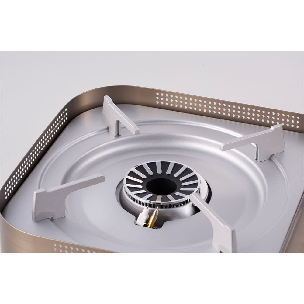 ●材質:【本体】アルミ押し出し材(アルマイト処理)、【しる受け】鋼板、【ごとく】耐熱アルミダイカスト、【バーナー】真鍮(クロムメッキ+耐熱黒塗装)、【点火つまみ】ABS樹脂