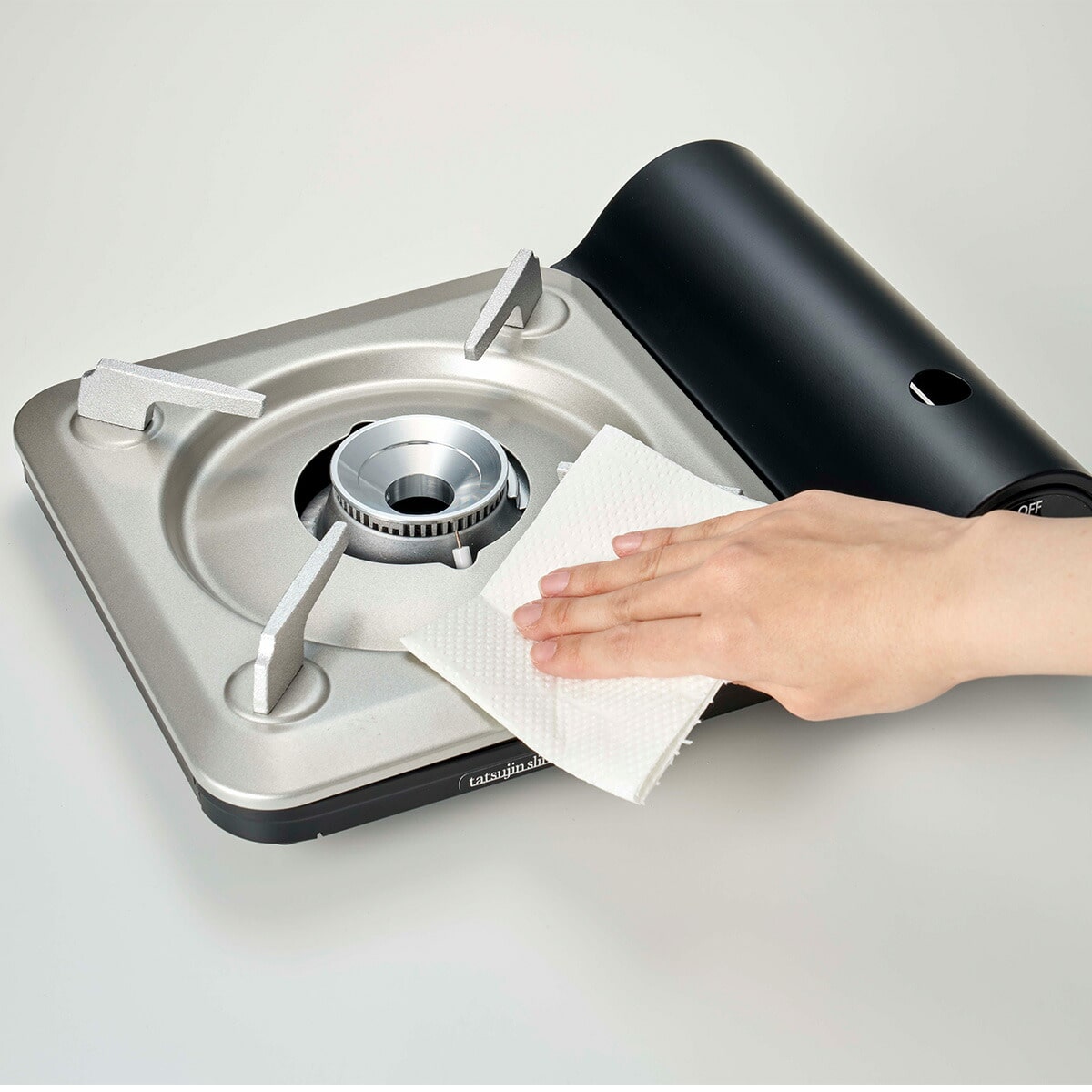 うす型!ごとく高さ74mm カセットフーシリーズのうす型のこんろです。調理時も食べる時もラクラク。 細部にまでこだわった使い勝手 容器カバーの穴を大きめにすることで、開閉とボンベの着脱確認をより容易にしました。 前後2方向どちら側からでも取り付け可能な「しる受け」を搭載 |