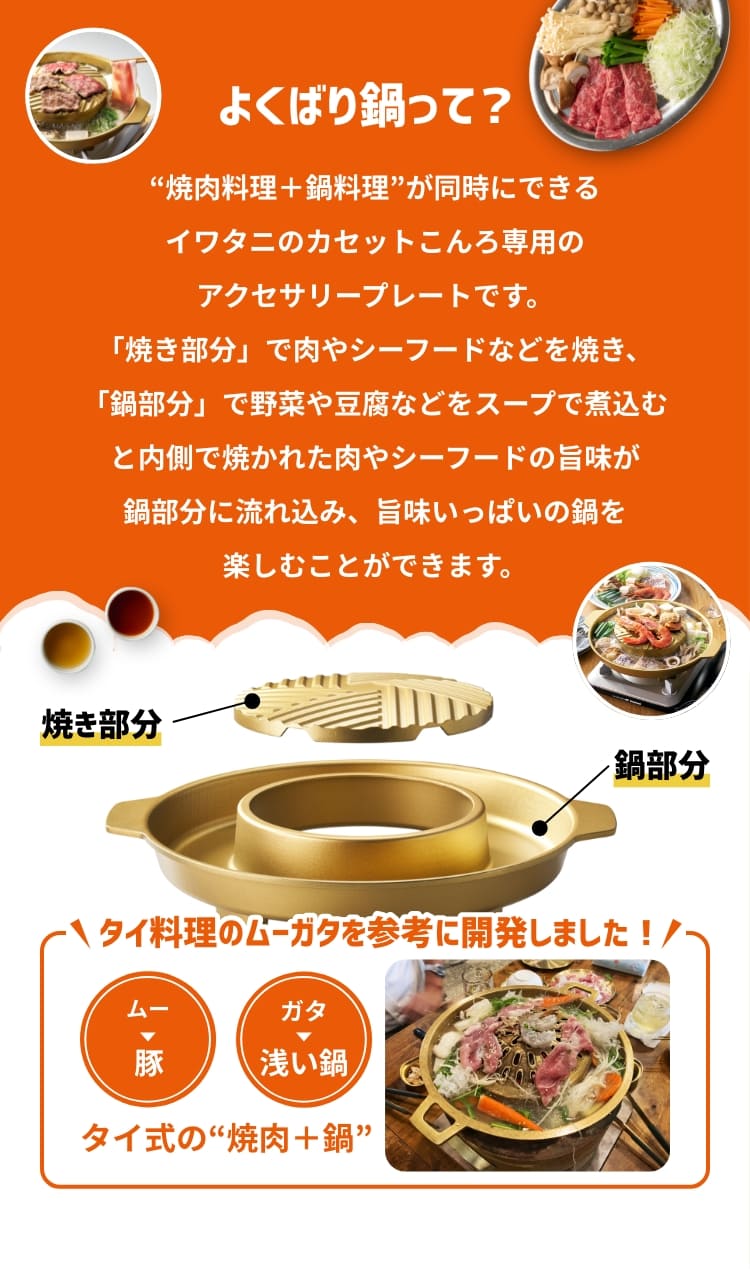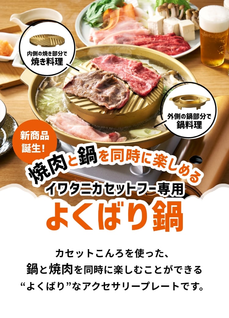 "焼肉料理+鍋料理"が同時にできるイワタニのカセットこんろ専用のアクセサリープレートです。