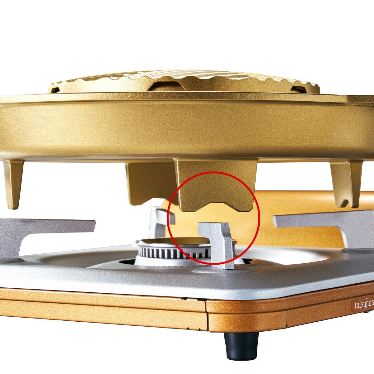 ごとくにはまる安全設計 イワタニカセットこんろの上で安全にご使用いただけるように脚付きになっております。 |