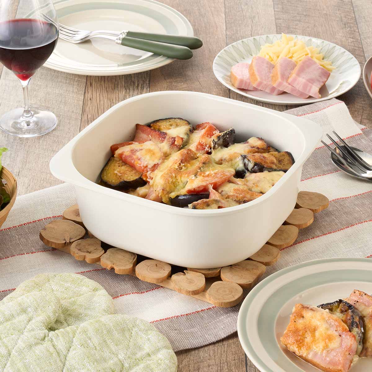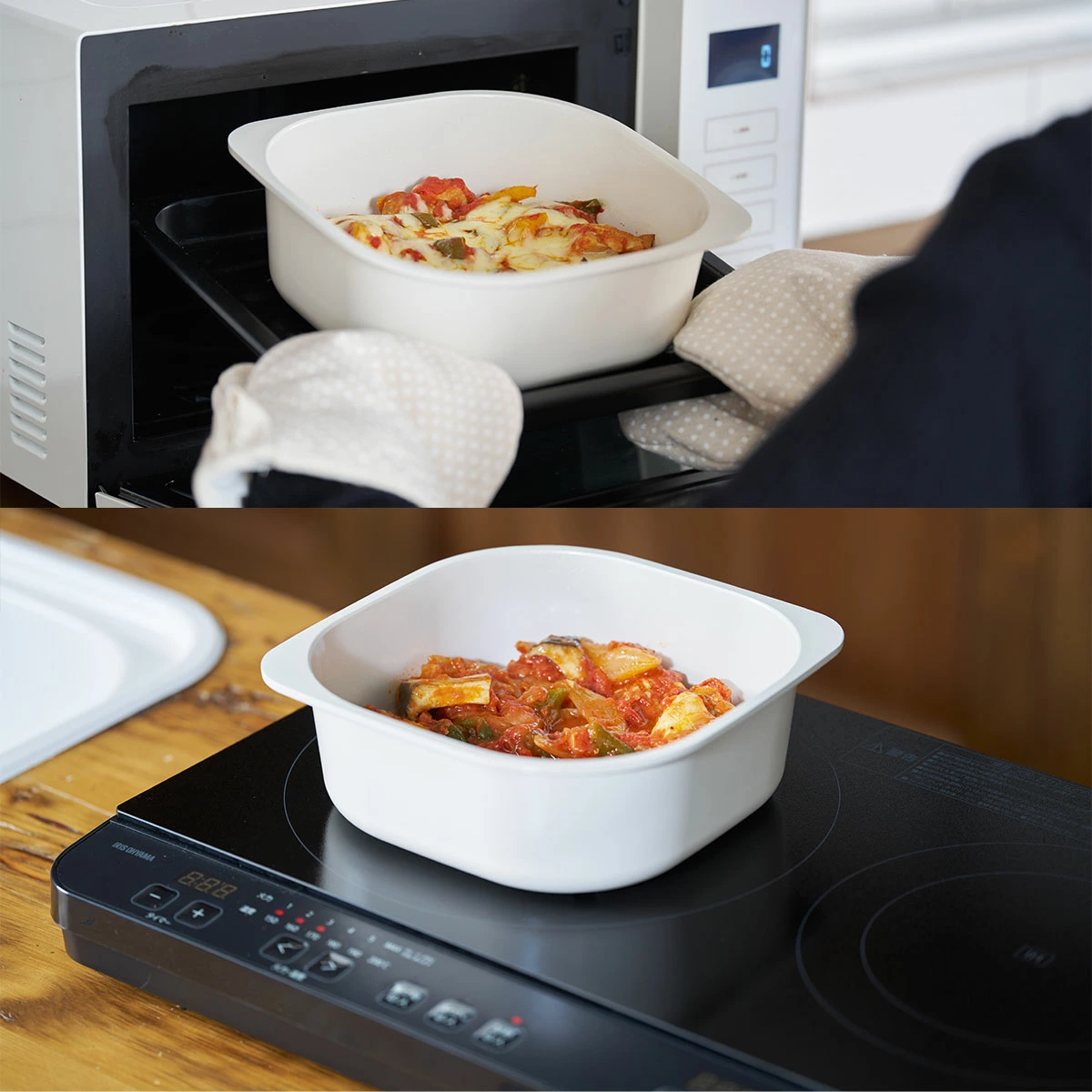 | 調理して、そのまま食卓に おしゃれなデザインで器としても使える。 スクエア型だから収納もしやすい。 |