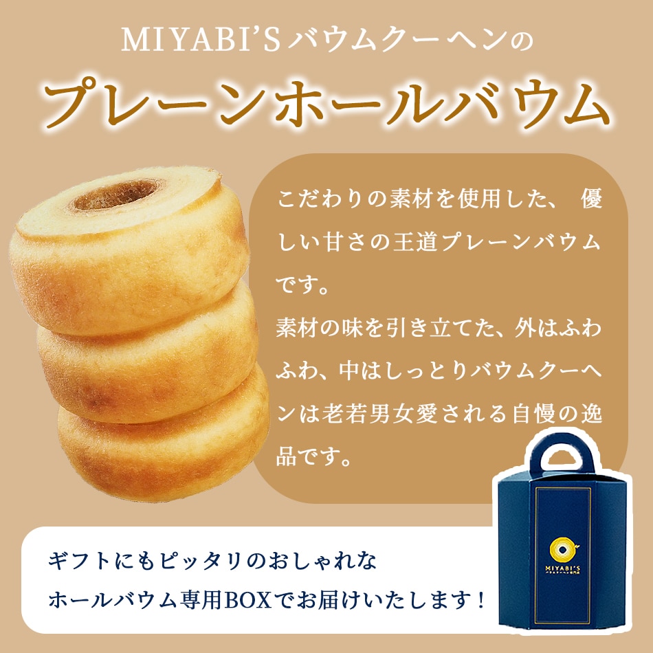 1本1本愛情を込めて作るふんわり新食感のバウムクーヘンは、特製の生地作りから、じっくり丁寧に時間をかけてふんわり焼き上げるまで、製造工程にもこだわってます。 「こんなのはじめて食べる!」「ふわふわで美味しい」「もっと食べたい!」ふんわり食べやすくやさしい味は子どもたちにも大人気!是非一度ご賞味ください♪ 【商品内容】プレーンバウム 1本 【原材料名】卵(国産)、プレミックス(砂糖、小麦粉、油脂、その他)、食用油脂、砂糖、コーンスターチ、アーモンド粉末、ラム酒/乳化剤、加工でん粉、ベーキングパウダー、香料、着色料(カロテン)、酸化防止剤(無水亜硫酸)、増粘剤(キサンタンガム)、pH調整剤、(一部に卵・乳成分・小麦・アーモンド・大豆を含む) 【賞味期限】製造日より30日 【保存方法】直射日光を避け、冷暗所にて保存してください。 【配送方法】常温便