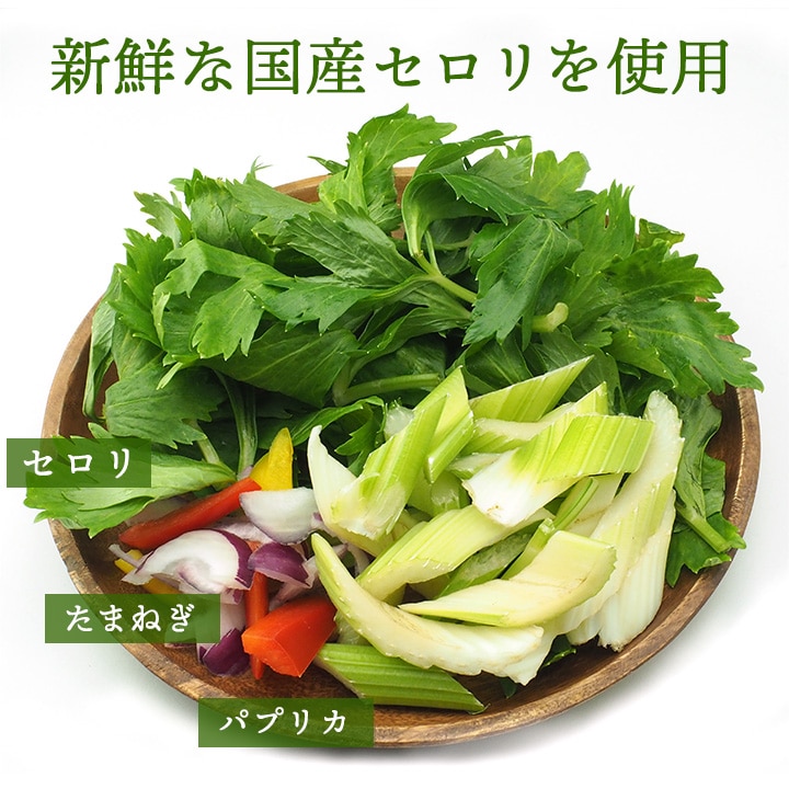 国産の新鮮なセロリで作ったセロリキムチ。ヤンニョンジャンに少しお酢を加えて甘辛酸っぱい味わいに仕上げています。セロリのシャキシャキした食感と、さわやかな香りが食をそそります。セロリがあまりお好きでない方も、このキムチならきっとお召し上がりいただけると思います。 【商品内容】セロリキムチ270g 【原材料名】セロリ(国産)、パプリカ、玉ねぎ、漬け原材料(砂糖、穀物酢、醤油、唐辛子、にんにく、食塩) 、(一部に小麦・大豆を含む) 【賞味期限】製造日より8日 【保存方法】要冷蔵(5℃以下) 【栄養成分表示】100gあたり エネルギー:59kcal、たんぱく質:0.7g、脂質:0.2g、炭水化物:14.1g、食塩相当量:0.6g(推定値) 【商品のお届けにつきまして】製造の都合上、出荷日は毎週火曜・金曜日の限定となります。予めご承知おきくださいませ。 ※毎週金曜日13時迄のご注文で翌週の火曜日出荷、水曜日の13時迄のご注文で、同じ週の金曜日出荷(商品到着はその翌日か翌々日)となります。 【配送方法】冷蔵便