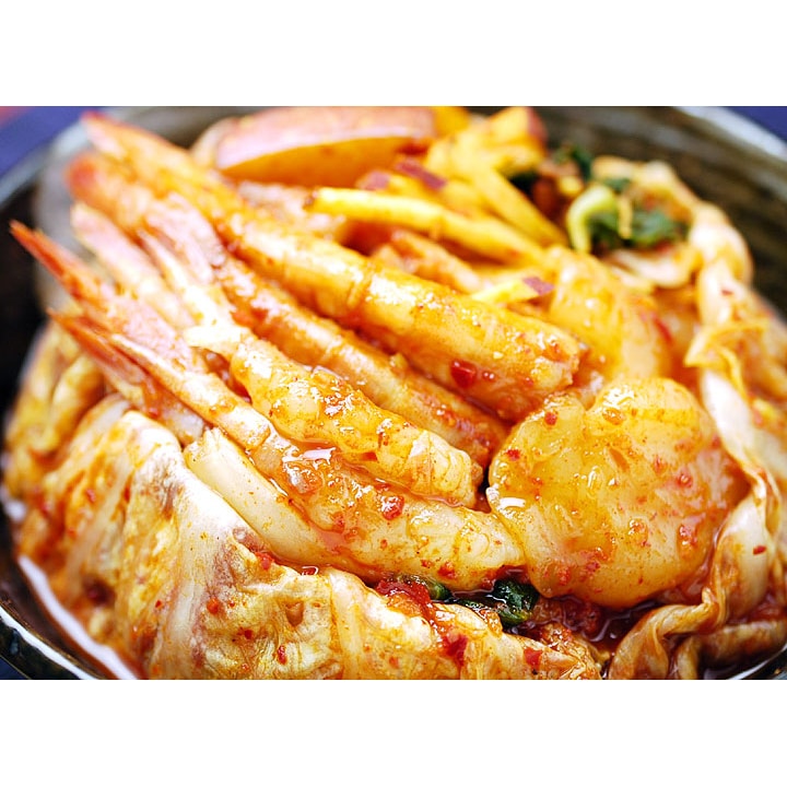 本品は寿司ネタとしても話題の寿鮮エビを詰め込んだ、スペシャルバージョンのポッサムキムチです。 ポッサムキムチの素晴しい風味を大切にするため、防腐剤等は一切使用していません。海鮮のエキスとキムチヤンニョム、野菜とのマッチングによって生まれるキムチの最高峰の味をお楽しみください。 【商品内容】寿鮮エビ入りポッサムキムチ 500g×2個(プラスチック容器入) 【原材料名】白菜(国産)、ホタテ貝柱(国産)、寿鮮エビ(カナダ産)、なつめ(韓国産)、さつま芋、甘エビ、せり、松の実、漬け原材料(りんご、唐辛子、アミエビ、砂糖、にんにく、生姜、鰹節、塩) / 調味料(アミノ酸)、(一部にえび・りんごを含む) 【賞味期限】製造日より7日 【保存方法】要冷蔵(5℃以下) 【栄養成分表示】100gあたり エネルギー:76kcal、たんぱく質:5.2g、脂質:1.3g、炭水化物:12.4g、食塩相当量:2.0g(推定値) 【商品のお届けにつきまして】製造の都合上、出荷日は毎週火曜・金曜日の限定となります。予めご承知おきくださいませ。 ※毎週金曜日13時迄のご注文で翌週の火曜日出荷、水曜日の13時迄のご注文で、同じ週の金曜日出荷(商品到着はその翌日か翌々日)となります。 【配送方法】冷蔵便