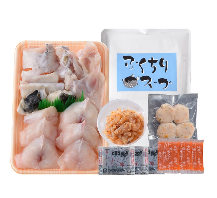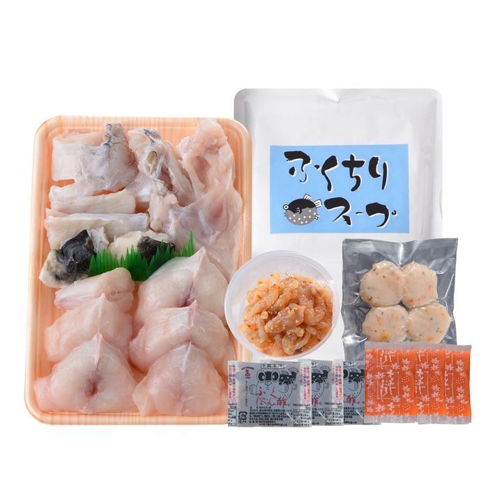 しろさばふくととらふくアラをぶつ切りにし、鍋用に仕立てました。ちり鍋後の残ったスープで味わう「ふく雑炊」は格別です。また、とらふくを刺身にする際に職人が包丁で丁寧に身から剥ぎ取り一匹のとらふくから少ししかとれない薄皮と身を塩辛風に味付けした「とらふく塩辛」は、お酒のおつまみや熱々のご飯に乗せても美味しくお召し上がりいただけます。 【商品内容】ふぐちり(シロサバフグ切身、トラフグアラ)360g、ふぐつみれ40g、とらふぐ塩辛60g、ふぐちりスープ300g、ふくポン酢10g×3、もみじおろし10g×3 【原産地】トラフグ(長崎県産、熊本県産:養殖)、シロサバフグ(福岡県産、長崎県産)、トラフグ(国産)、大根(国産) 【アレルギー指定食品(28品目)】小麦・乳成分・ごま・さけ・大豆 ※はちみつを使用しております。 【賞味期限】冷凍90日 【保存方法】要冷凍(-18℃以下で保存) 【配送方法】冷凍便 ※こちらの商品はメーカー直送の為、他の商品とは同梱出来ません。