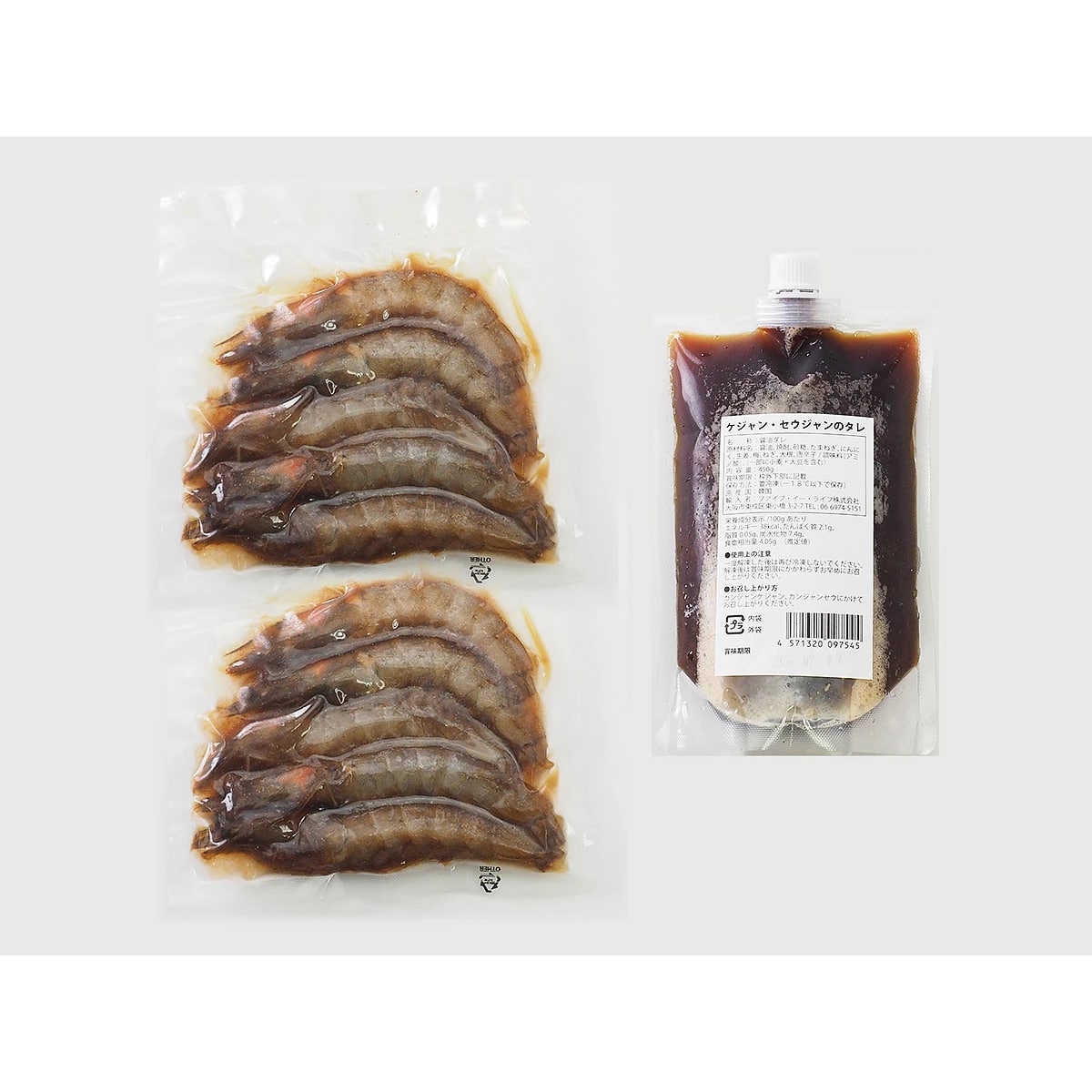 韓国の名店「飛鷹島灯台家」直輸入のカンジャンセウをご紹介いたします。「カンジャンセウ」は韓国語で「エビの醤油漬け」という意味の料理です。「カンジャンセウ」とも呼ばれ、韓国では定番のおつまみとして親しまれています。ご飯に乗せて食べたり、そのままおつまみとして食べたり、レタスなどで包んで食べたりします。お好みでコチュジャンやキムチを添えても美味しくいただけます。 ●味が良いことで知られる鮮度の良いシロアシエビ(バナメイエビ)を使用。 ●エビとソースは別梱包。食べる直前にソースをかけるので、エビ本来の味をお楽しみいただけます。 ●エビの生臭さを消すために梅をたっぷり使用した特許出願中(韓国)のセウジャンソースです。 ●鮮度維持のため特許出願中(韓国)の真空包装でお届けします。 ●美味しいお召し上がり方 自然解凍または冷蔵庫で解凍後、タレをかけてそのままお召し上がりください。 頭の部分を取り、エビ味噌を吸って食べます。 体の部分は殻をすべて取って、海苔に巻いて食べるのも美味しいです。 ご飯に身を乗せて、タレと生卵を絡めて食べるのもおすすめです。 【商品内容】セウジャン(シロアシエビ5尾)180g×2、セウジャンソース200g 【原材料名】 ●シロアシエビ(ペルー産)、漬けダレ(醤油、焼酎、砂糖、たまねぎ、にんにく、生姜、梅、ねぎ、大根、唐辛子)/調味料(アミノ酸)、(一部にエビ・小麦・大豆を含む) ●セウジャンソース:醤油、焼酎、砂糖、たまねぎ、にんにく、生姜、梅、ねぎ、大根、唐辛子/調味料(アミノ酸)、(一部に小麦・大豆を含む) 【賞味期限】冷凍30日以上保証(解凍後は3日以内にお召し上がりください。) 【保存方法】要冷凍(-18℃以下) 【原産国名】韓国 【配送方法】冷凍便