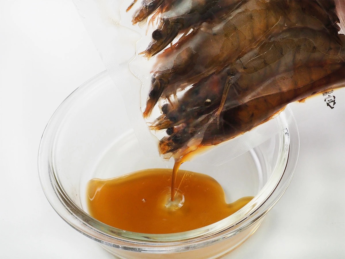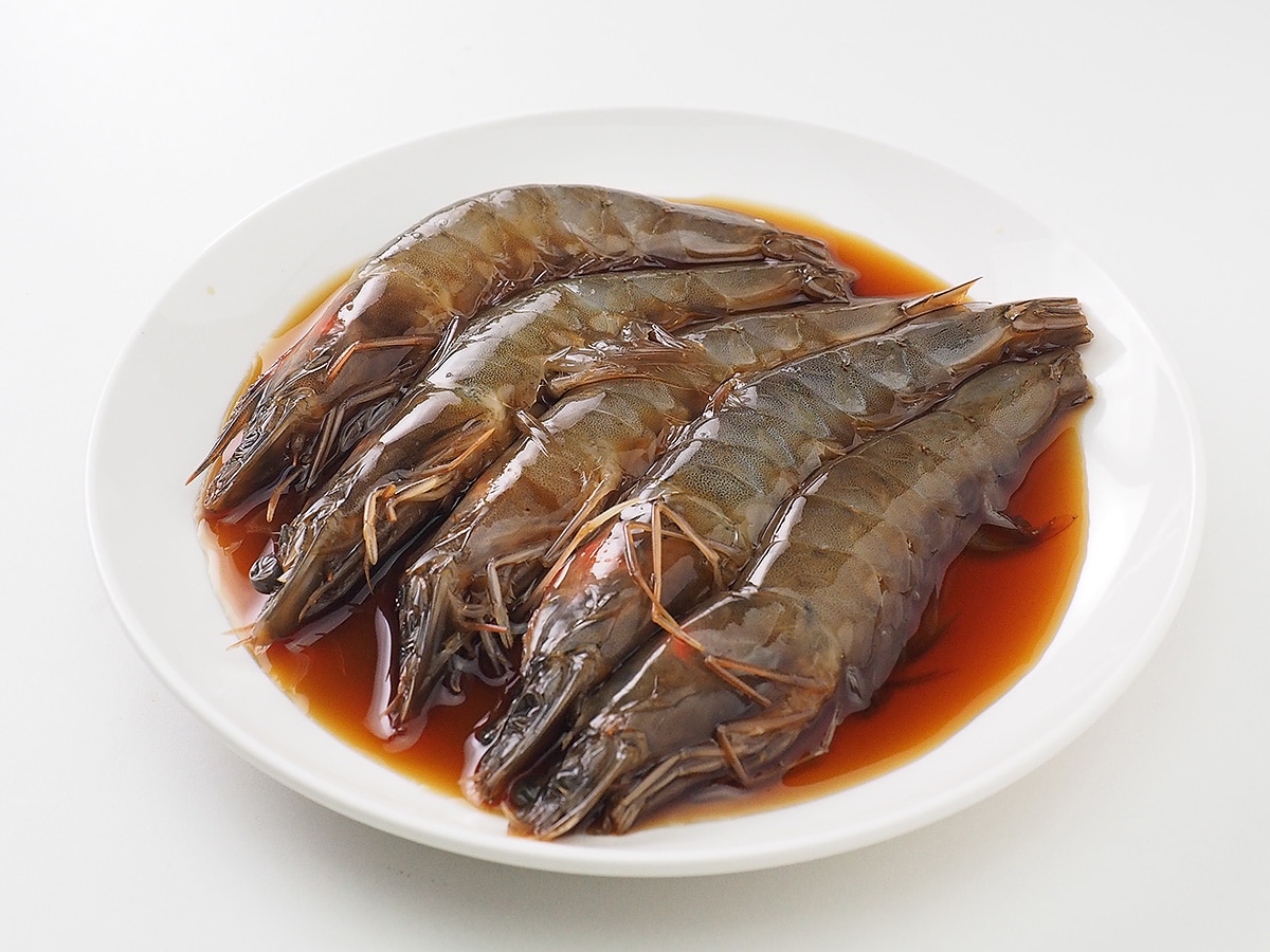 原料に使用するエビは味の良いことで知られる白足エビ(バナメイエビ)。品質の良い大ぶりのエビを厳選して使用しています。